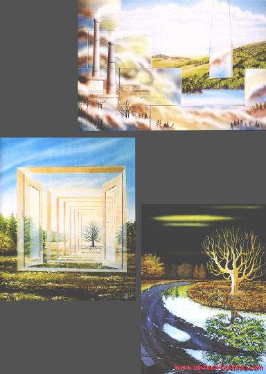 "Nature on the Run", "Nevertheless", "Contradictory Behavior", "Mirroring", "The Blessing of Progress", "Looking into the Green", "It's Melting Between Your Fingers", "Just Before Twelve" and "On the Search after water" are other environmentally critical images from his large repertoire.